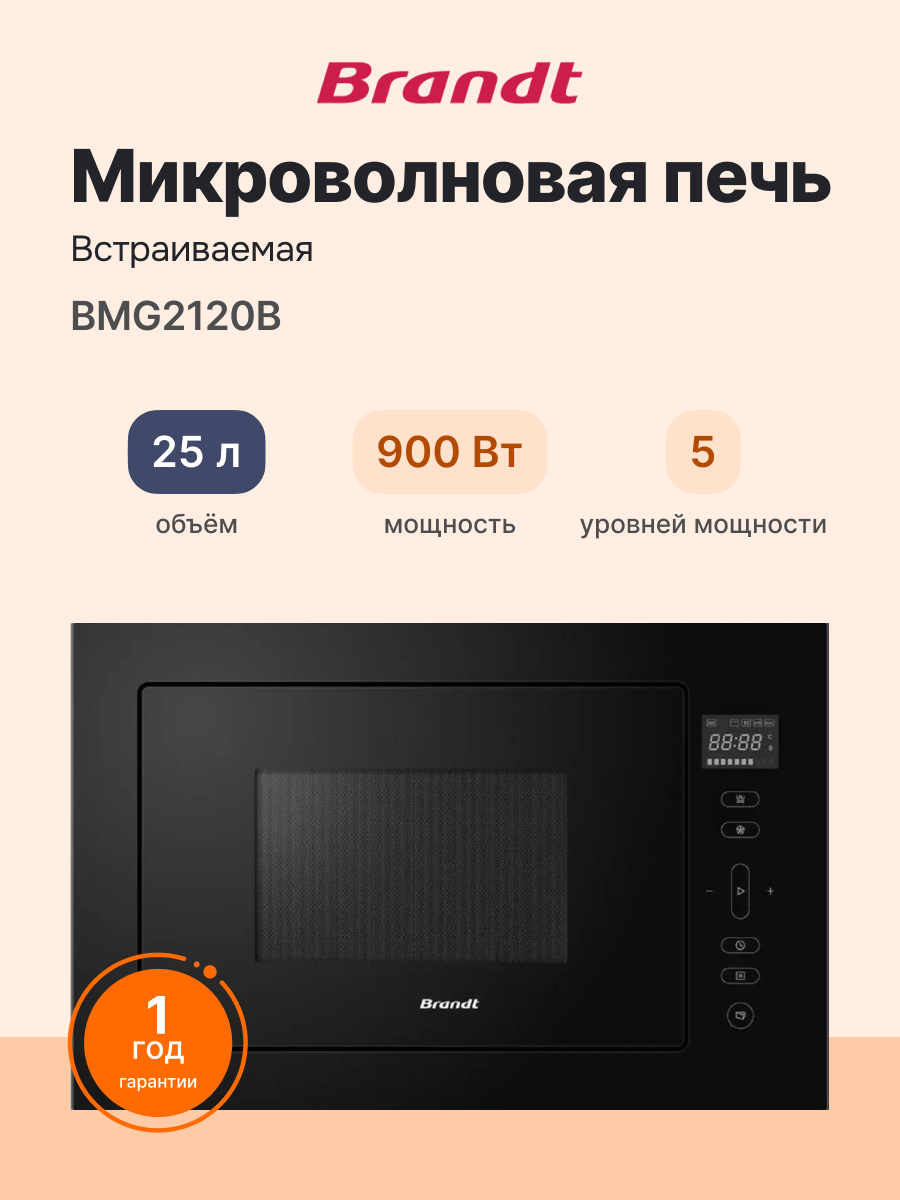 Встраиваемая микроволновая печь BRANDT BMG2120B, официальная гарантия