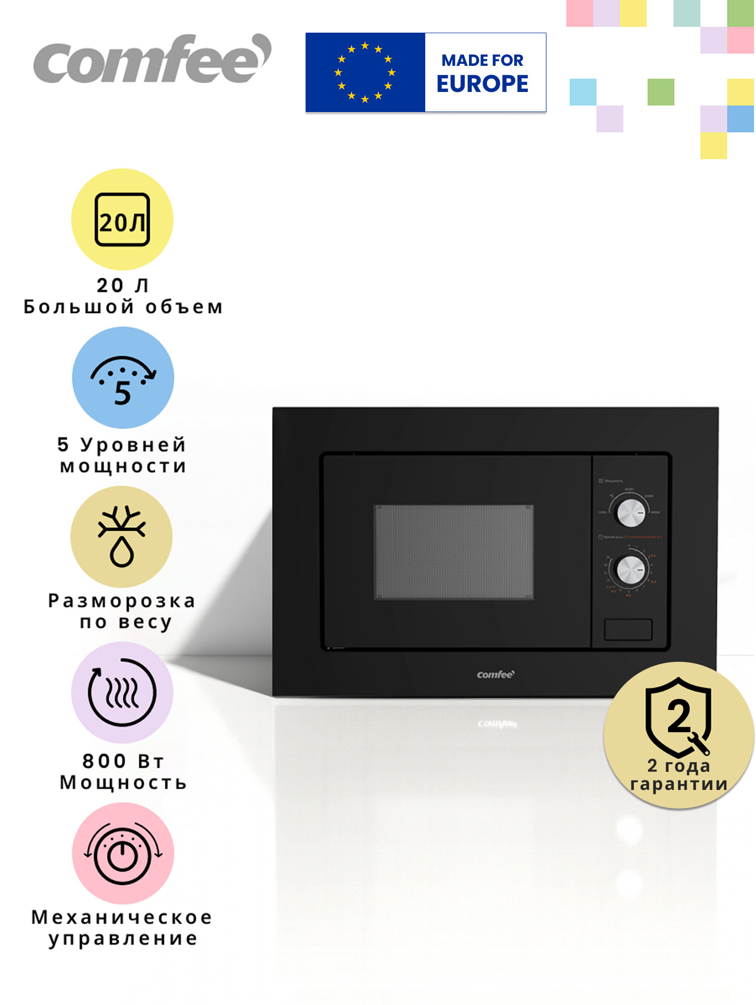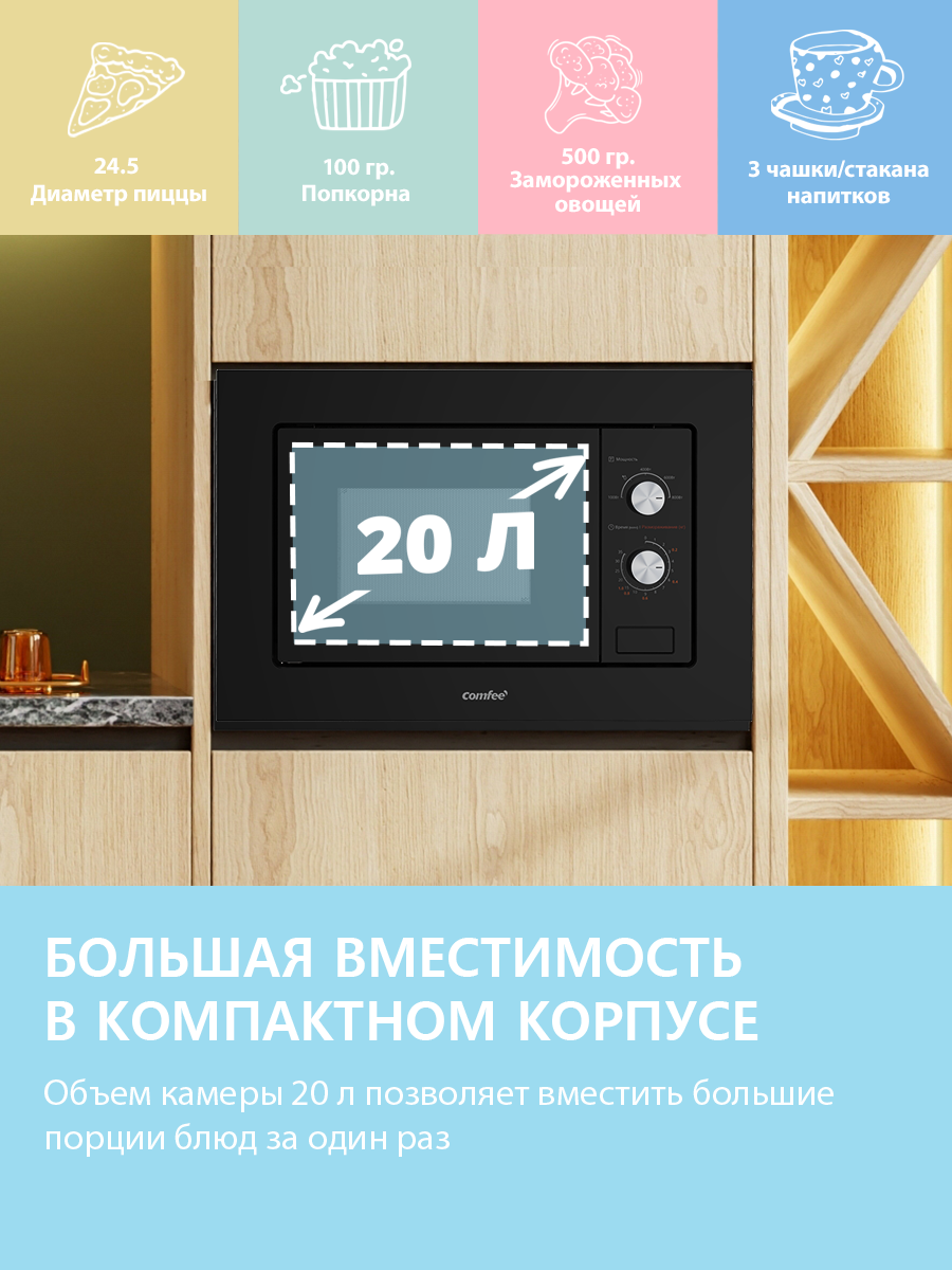 Встраиваемая микроволновая печь Comfee CBM200GB, 800 Вт, камера 20 л, 8 автопрограмм, размораживание, черное стекло: сравнение цен, характеристики, фото, актуальное наличие и цены.