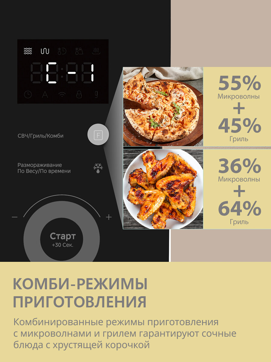 | Режимы работы | гриль, микроволны + гриль, разморозка |