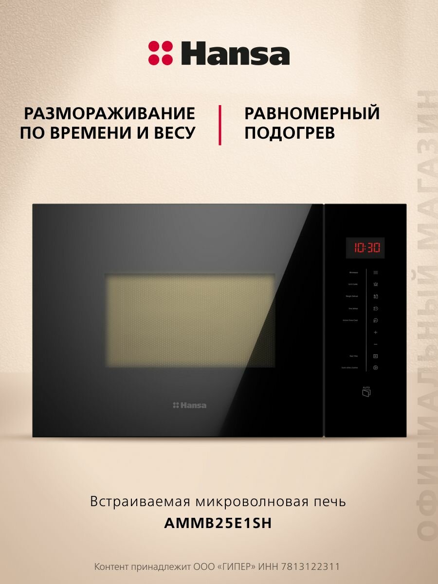 Встраиваемая микроволновая печь Hansa AMMB25E1SH, 900 Вт, гриль с мощностью 1000 Вт, внутренняя камера на 25 литра из нержавеющей стали, автоматические программы, размораживание по весу: сравнение цен, характеристики, фото, актуальное наличие и цены.