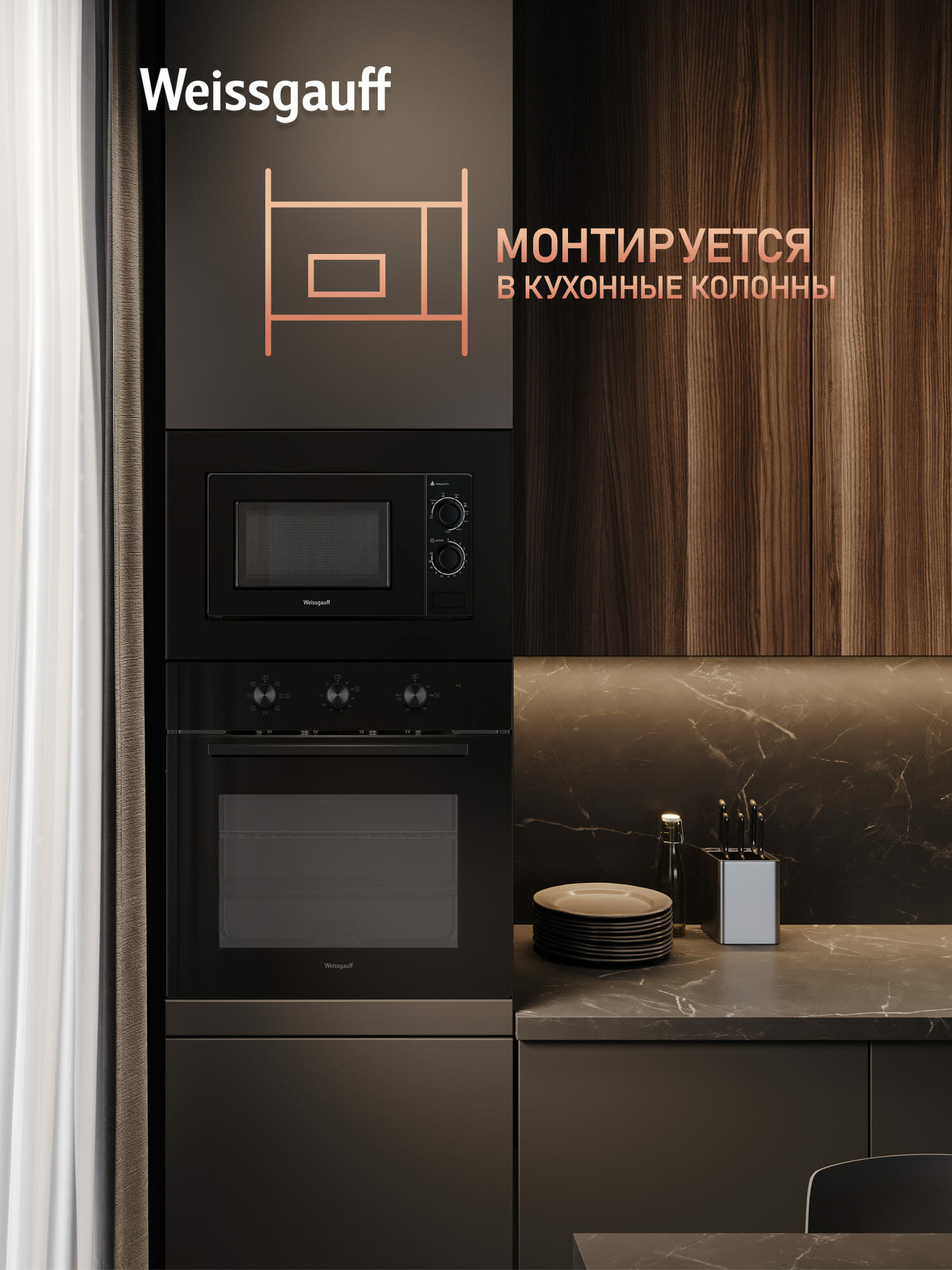 Купить Встраиваемая микроволновая печь Weissgauff HMT-2016 BGL Grill, Объём 20 литров, Мощность СВЧ 700 Вт, Гриль 900 Вт с доставкой по всей России.