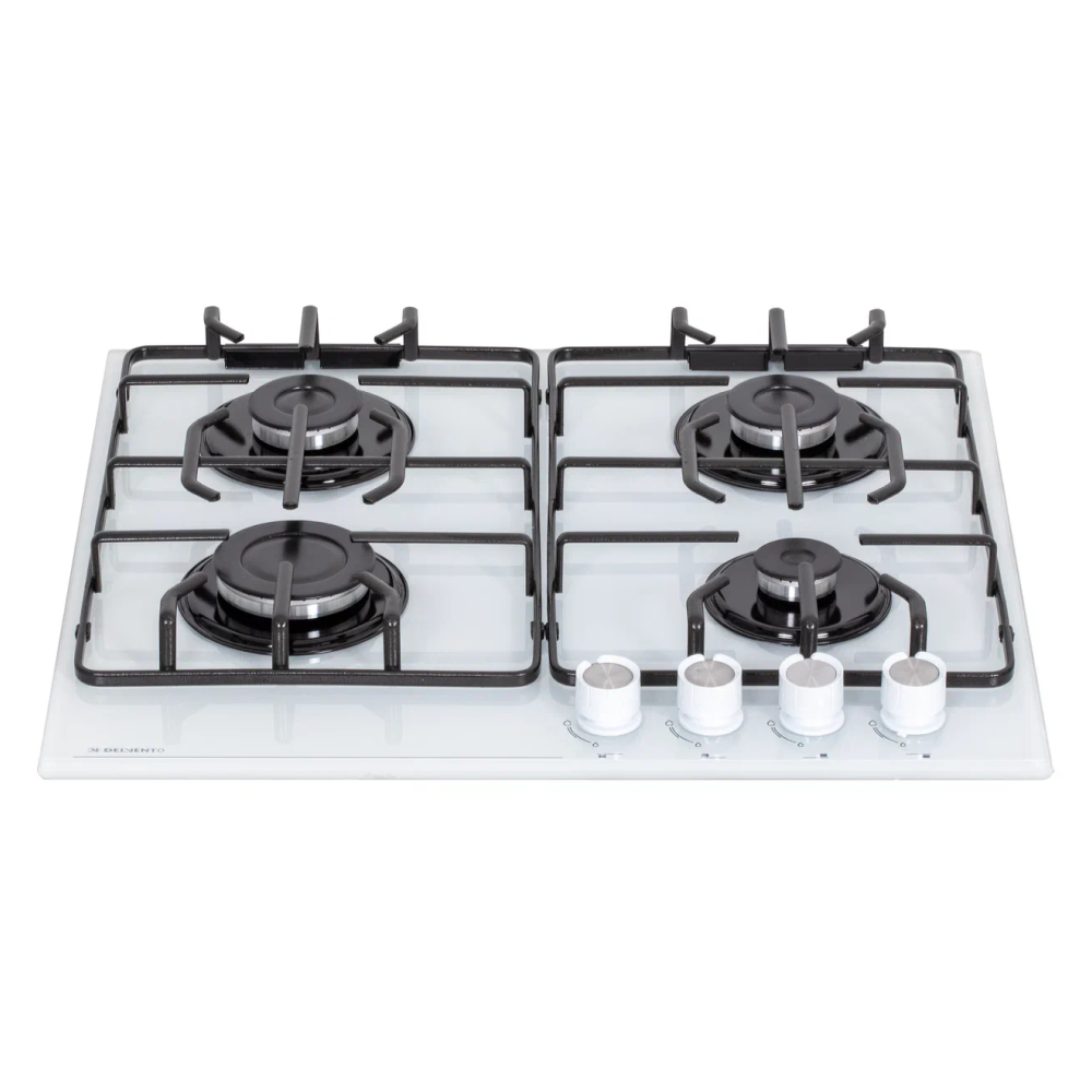 Купить Варочная панель газовая DELVENTO 60см, 4 конфорки, закаленное стекло, электроподжиг, чугунные решетки, 3 года гарантии с доставкой по всей России.