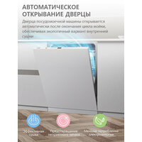 Управление посудомоечной машиной возможно со смартфона c помощью приложения, что позволяет запускать ее дистанционно и контролировать расход воды и электроэнергии, а также предоставляет доступ к еще большему количеству программ. Кроме того, посудомоечная машина интегрирована с умной колонкой Алиса, что дает вам возможность управлять устройством посредством голоса.