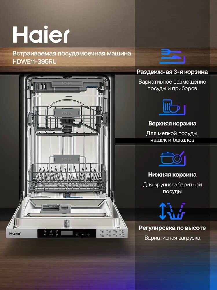 | Особенности конструкции | подсветка камеры, дисплей, сенсор чистоты воды, регулируемая по высоте корзина для посуды, таймер отсрочки, использование средств 3 в 1 |