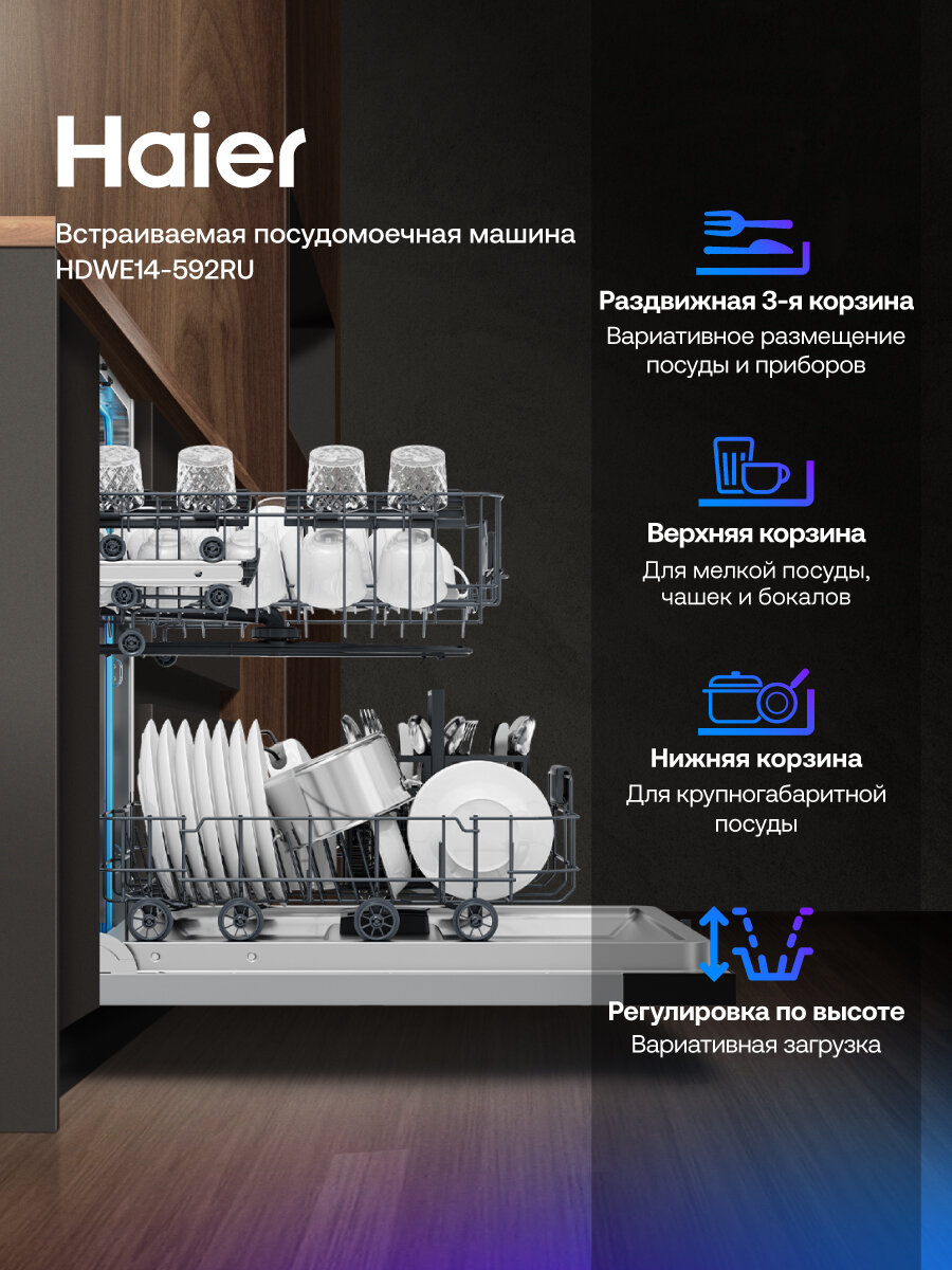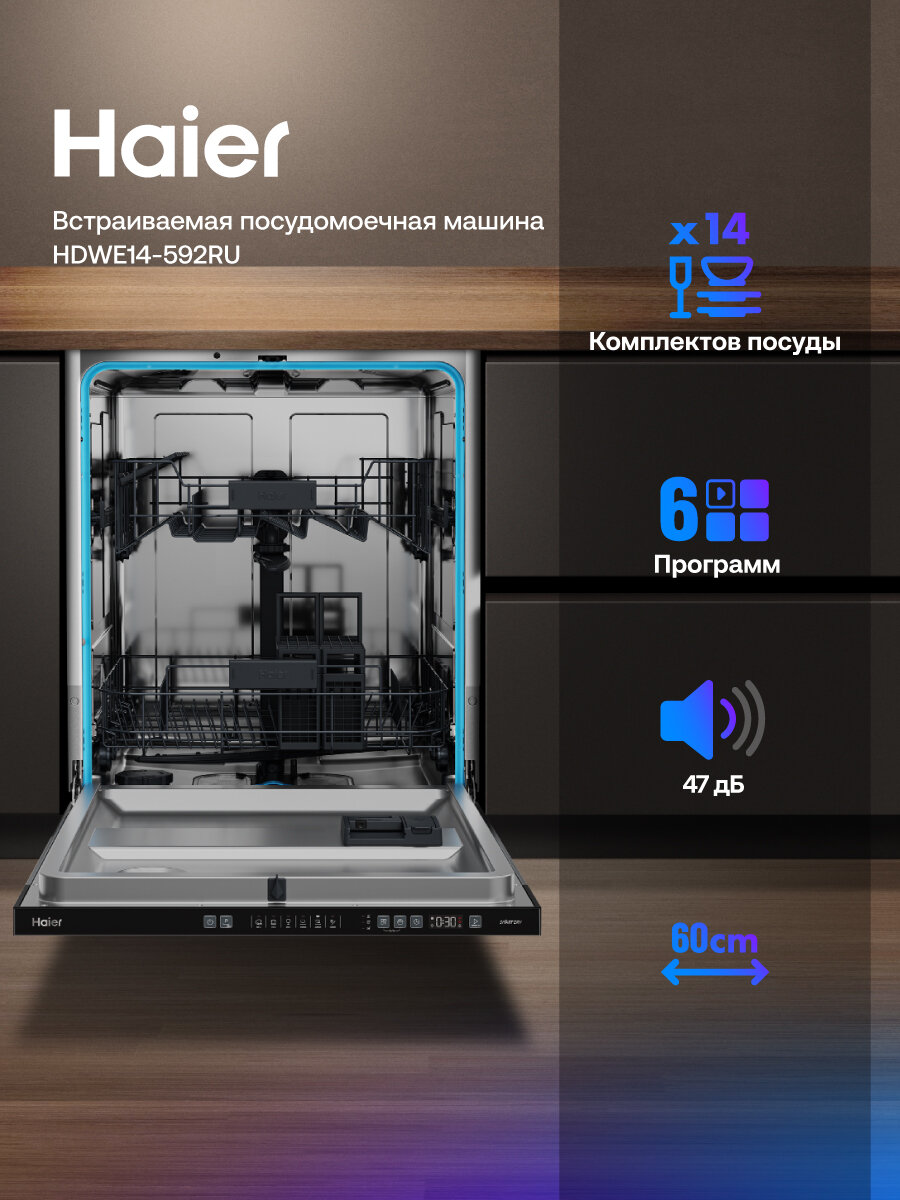 Купить Встраиваемая посудомоечная машина Haier HDWE14-592RU, 60 см, 14 комплектов, 6 программ, серая с доставкой по всей России. Встраиваемая посудомоечная машина Haier HDWE14-592RU, 60 см, 14 комплектов, 6 программ, серая: сравнение цен, характеристики, фото, актуальное наличие и цены.
