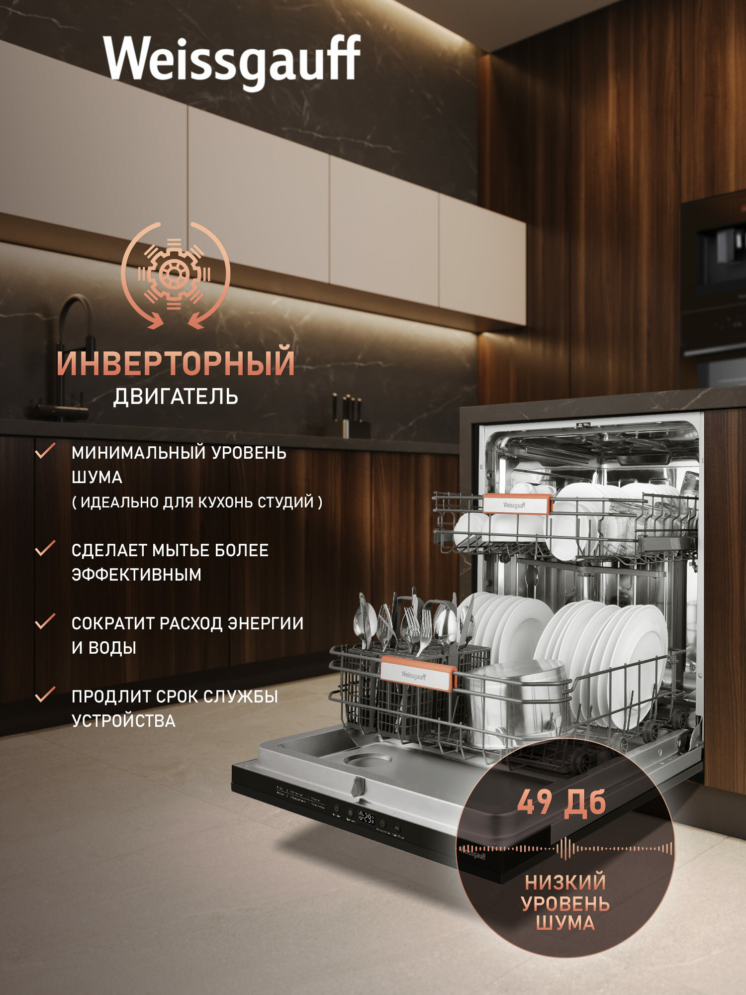 Полноразмерная посудомоечная машина Weissgauff, обладающая вместимостью до 12 комплектов посуды с функцией "Луч на полу", не только удивит богатством функциональных решений, но и обеспечит идеальный результат а наличие 6 программ для мытья позволит подобрать оптимальный режим в зависимости от количества посуды и степени загрязнения.