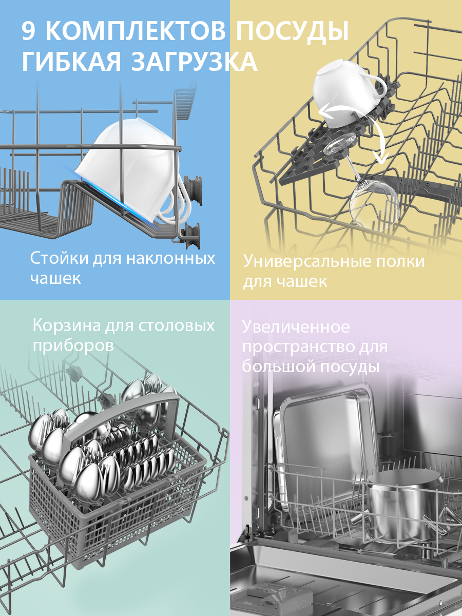 Встраиваемая посудомоечная машина Comfee CDWI452i - это идеальное решение для тех, кто хочет сэкономить время и силы на мытье посуды. Эта модель имеет вместимость 9 комплектов и подходит для больших семей или тех, кто часто принимает гостей.