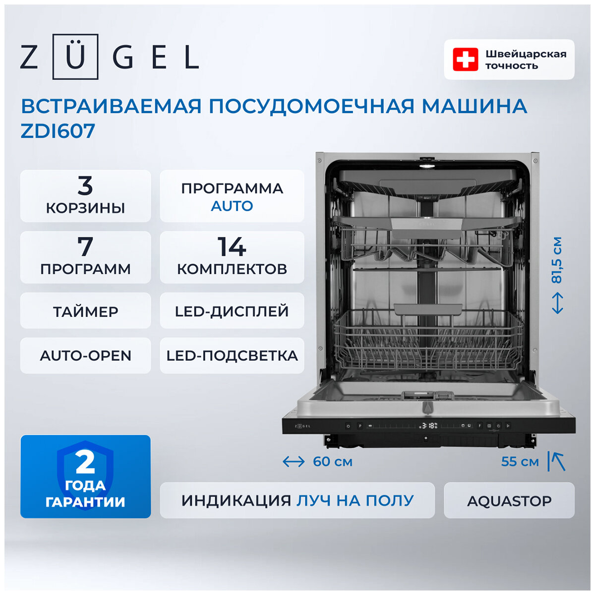 Купить Встраиваемая посудомоечная машина Zugel ZDI607 с доставкой по всей России. Встраиваемая посудомоечная машина Zugel ZDI607: сравнение цен, характеристики, фото, актуальное наличие и цены.