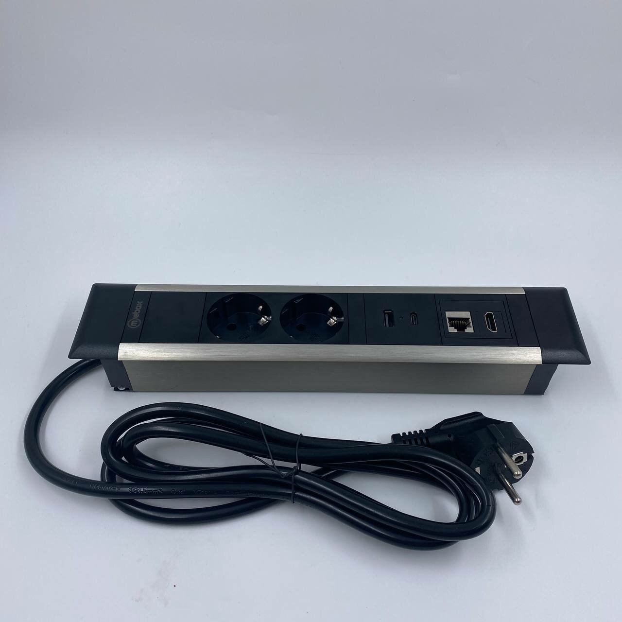 Встраиваемая розетка для столешницы на 2 ЕВРО, USB A + C, HDMI и RJ45, Скрытая, Для стола, Встроенная с заземлением