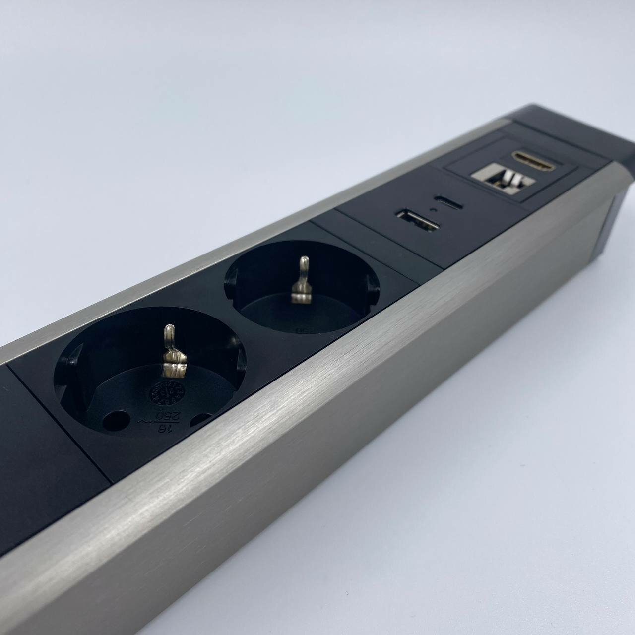 Встраиваемая розетка для столешницы на 2 ЕВРО, USB A + C, HDMI и RJ45, Скрытая, Для стола, Встроенная с заземлением: сравнение цен, характеристики, фото, актуальное наличие и цены.