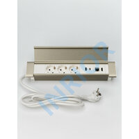 Встраиваемая розетка для столешницы на 3 ЕВРО, USB A + C, HDMI и RJ45, скрытая. с заземлением, белая, тройник
