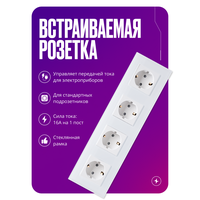 Розетка четверная встраиваемая на 16 А, 4 поста, белая со стеклянной рамкой, заземлением и шторками: сравнение цен, характеристики, фото, актуальное наличие и цены.