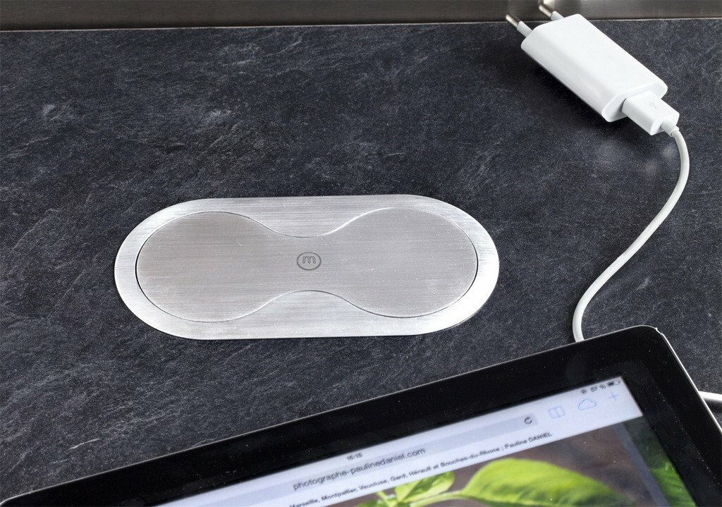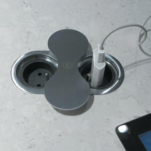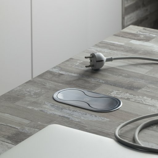 Встраиваемая розетка SFL Eight самая компактная среди врезных розеток которая врезается в стандартную столешницу а сама опускается в глубь всего на 45,7мм.