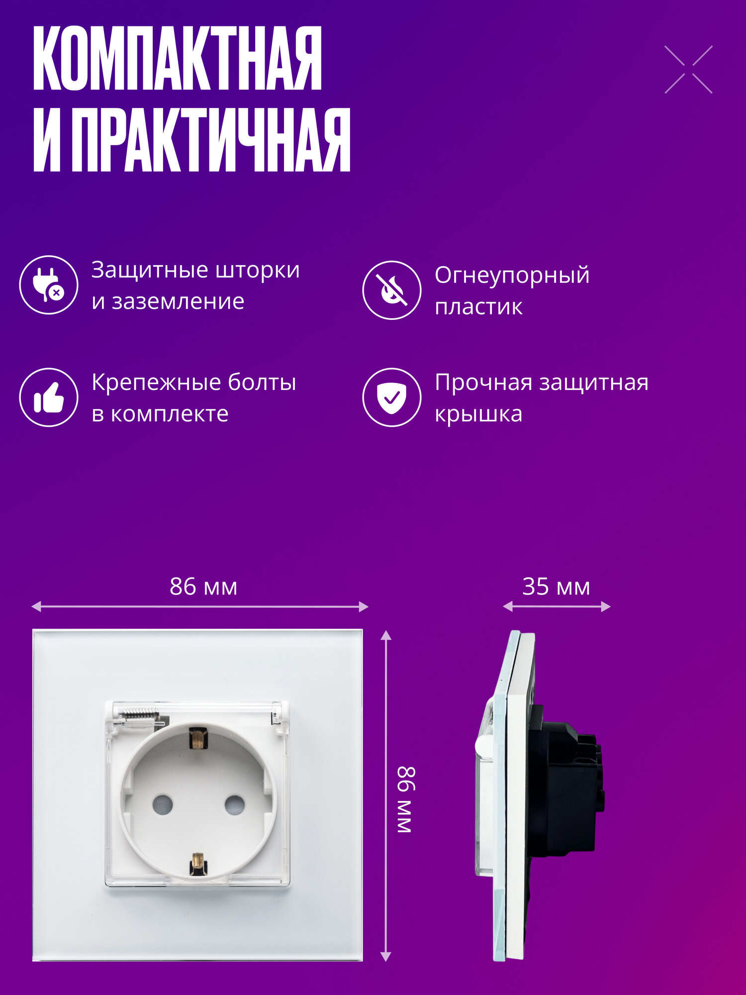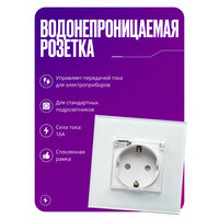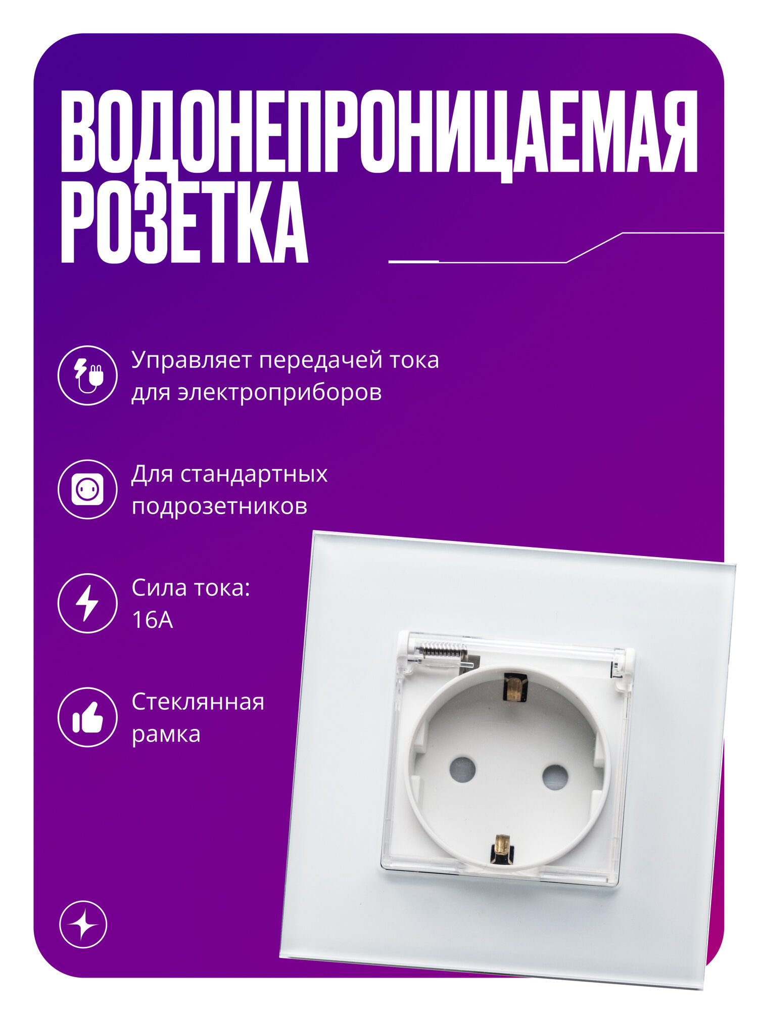 Встраиваемая розетка водонепроницаемая с защитной крышкой на 16А стеклянная с заземлением, белая: сравнение цен, характеристики, фото, актуальное наличие и цены.