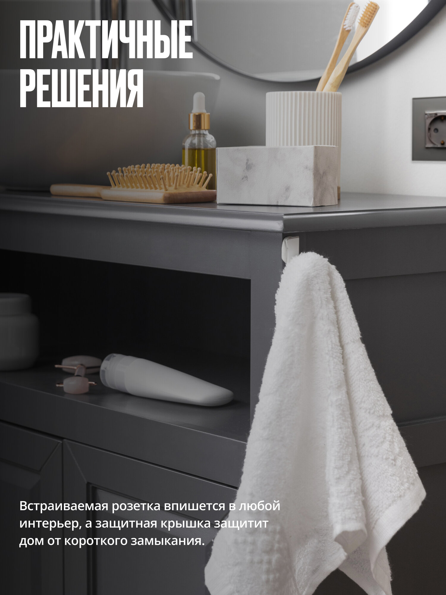 Встраиваемая розетка водонепроницаемая с защитной крышкой на 16А стеклянная с заземлением, серая: сравнение цен, характеристики, фото, актуальное наличие и цены.