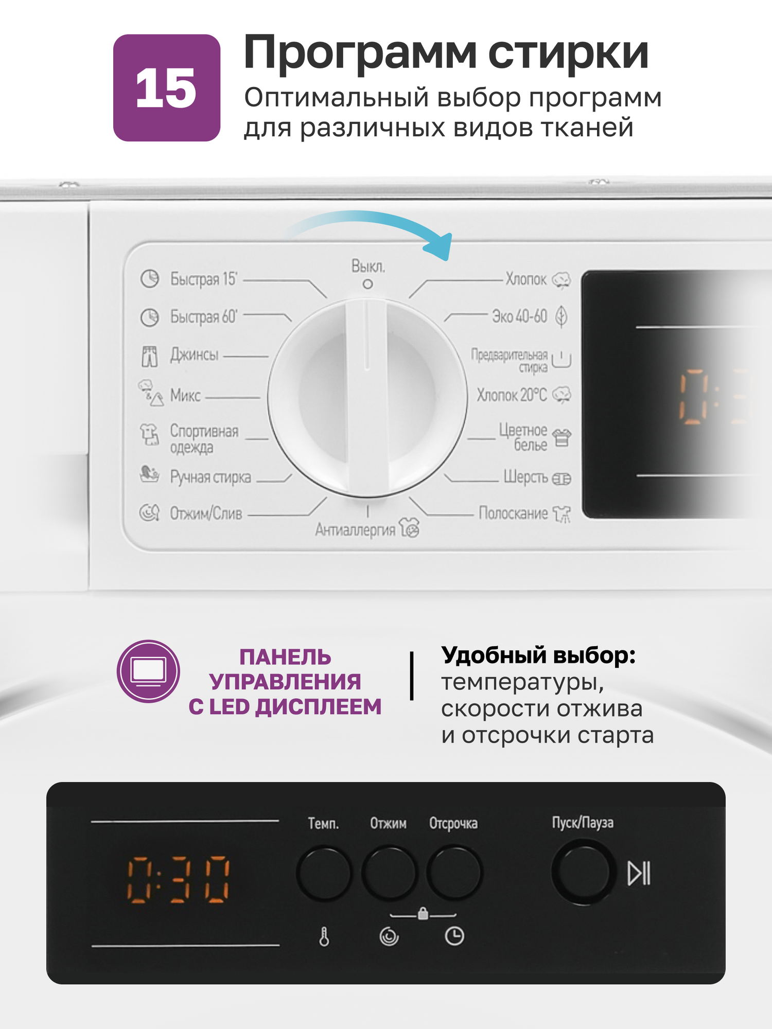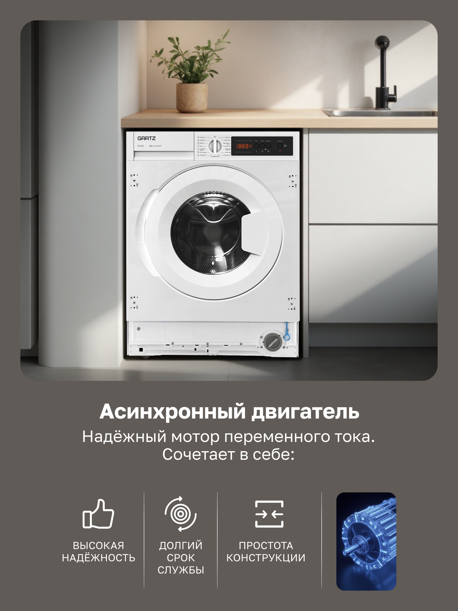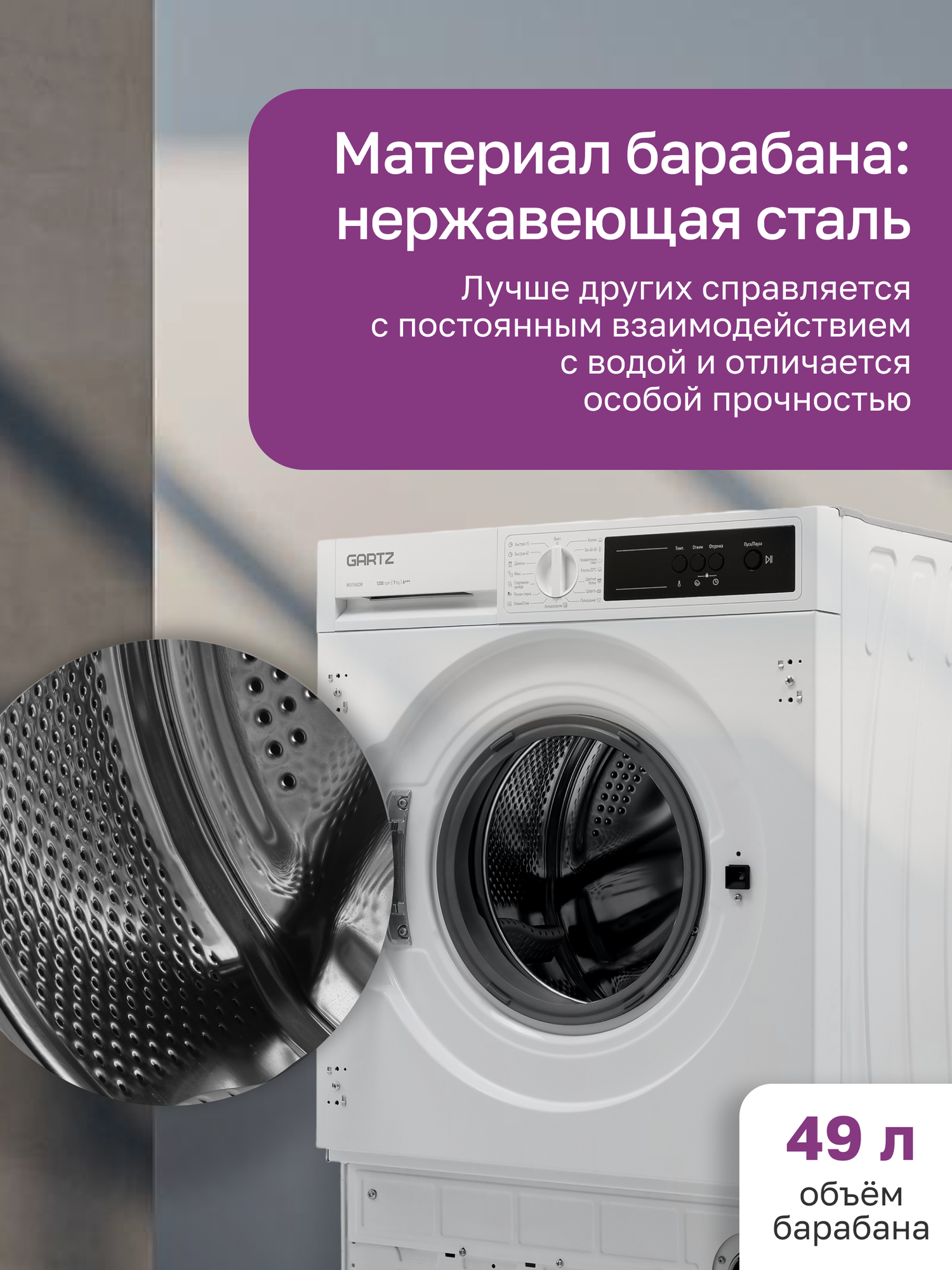 Встраиваемая стиральная машина GARTZ WLI75422W Home comfort, 7 кг, 1200 об/мин, 15 программ, режим Антиаллергия, белая: сравнение цен, характеристики, фото, актуальное наличие и цены.