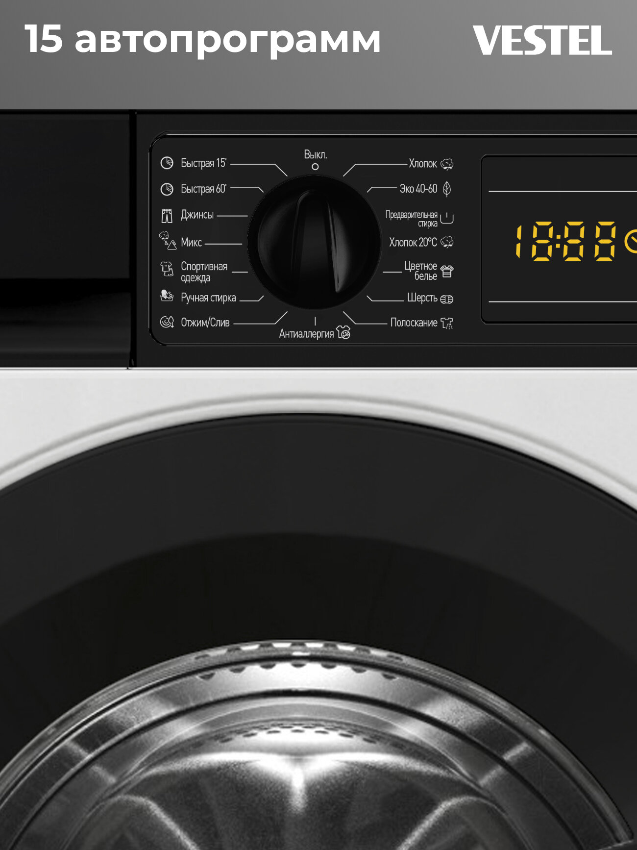 | Программы | быстрая стирка, гипоаллергенная стирка, дополнительное полоскание, ежедневная стирка, отжим, полоскание, предварительная стирка, ручная стирка, стирка деликатных тканей, стирка джинсов, стирка паром, стирка синтетики, стирка смешанных тканей, стирка спортивной одежды, стирка хлопка, стирка цветных вещей, стирка шерсти, экономичная программа |