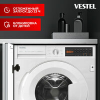 Купить Встраиваемая стиральная машина VESTEL, загрузка 8кг, 1200 об/мин, дозагрузка белья, обработка паром, 15 программ с доставкой по всей России.