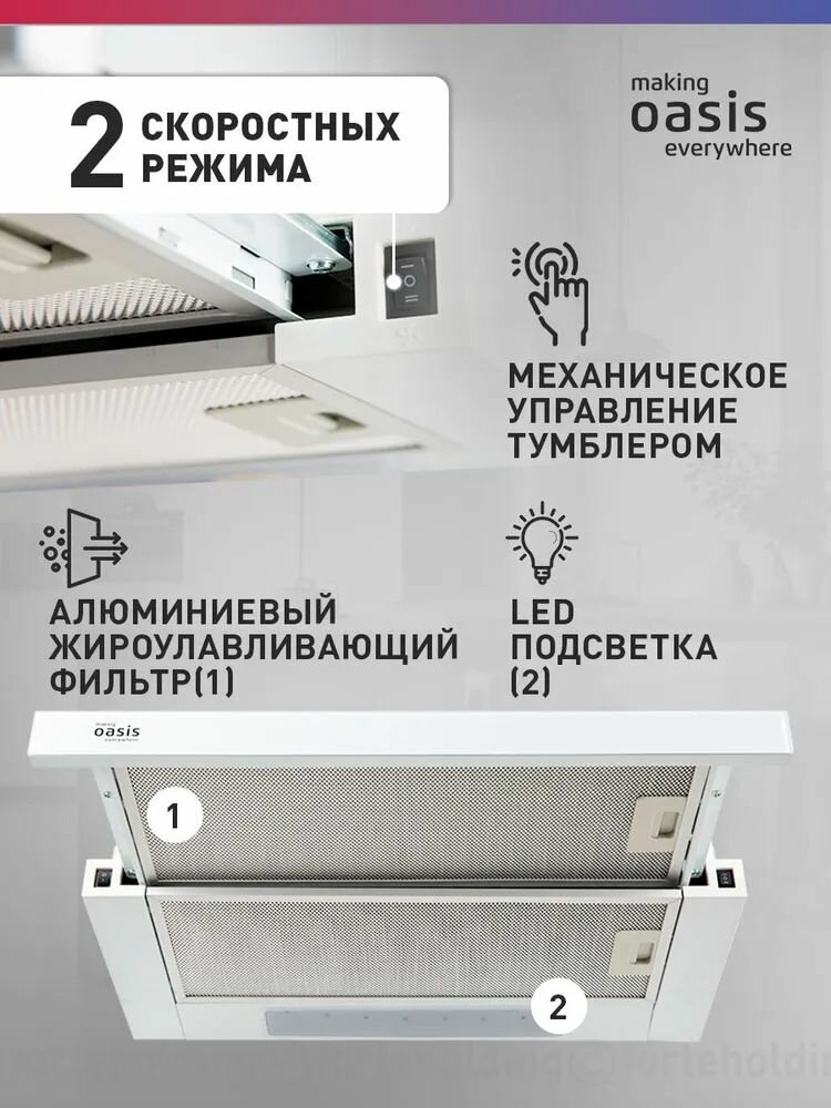Встраиваемая телескопическая вытяжка making Oasis everywhere UV-60WG белая, 500 куб м/ч, отвод, циркуляция, ширина 60 см: сравнение цен, характеристики, фото, актуальное наличие и цены.