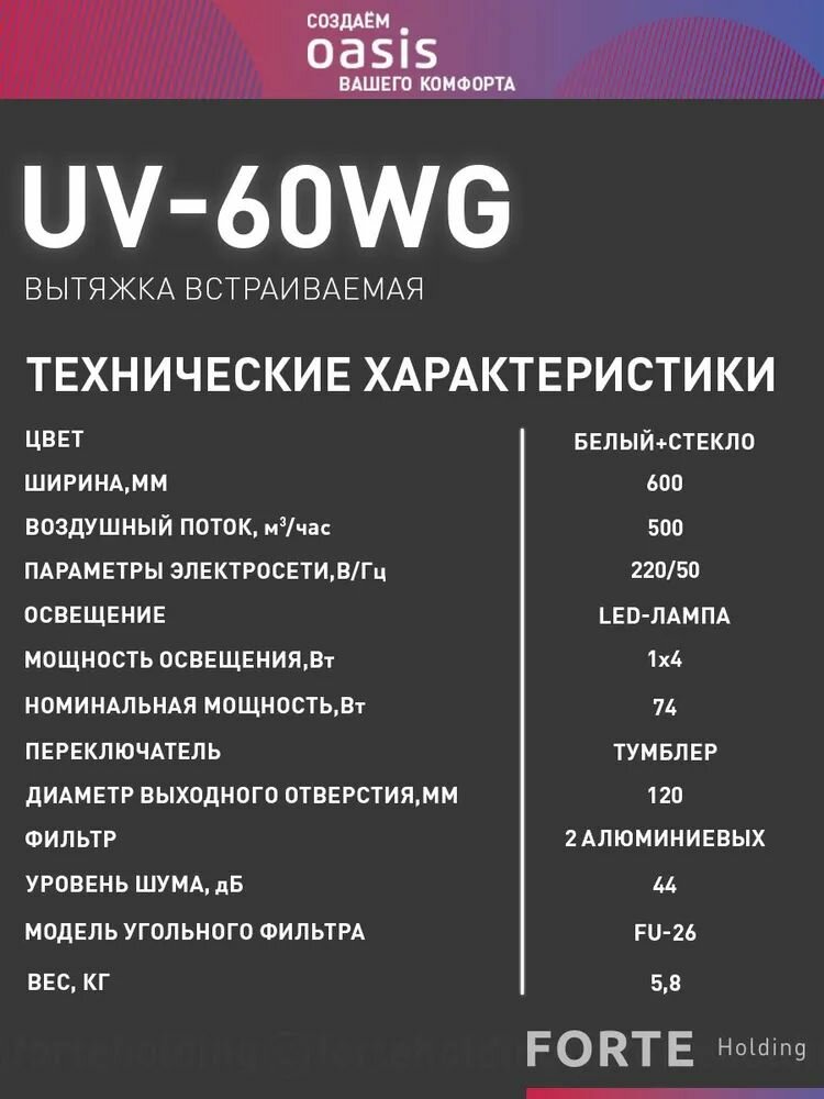 Купить Встраиваемая телескопическая вытяжка making Oasis everywhere UV-60WG белая, 500 куб м/ч, отвод, циркуляция, ширина 60 см с доставкой по всей России.