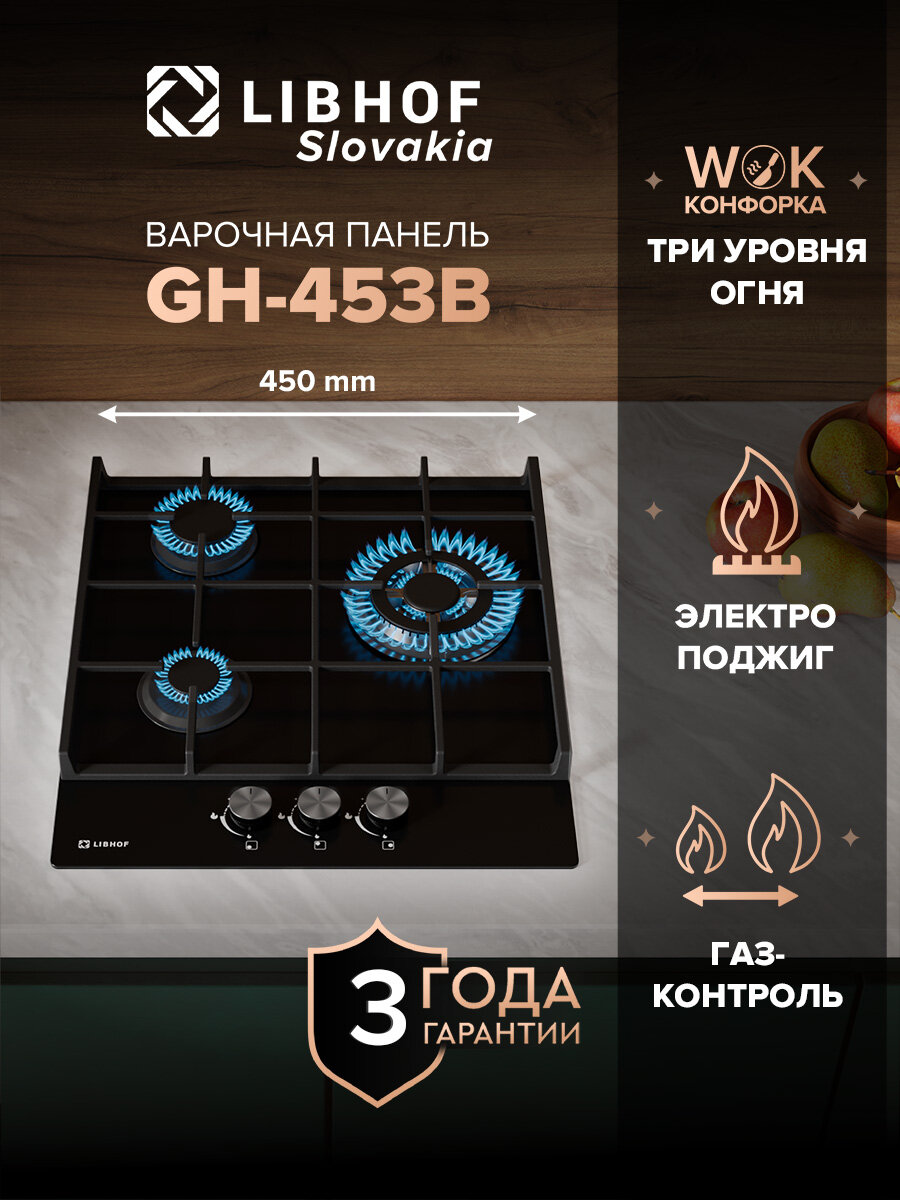 Купить Встраиваемая варочная газовая панель Libhof GH-453 black 3 конфорки с доставкой по всей России. Встраиваемая варочная газовая панель Libhof GH-453 black 3 конфорки: сравнение цен, характеристики, фото, актуальное наличие и цены.