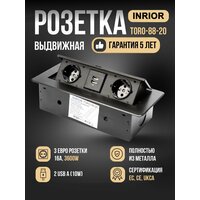 Встраиваемая выдвижная розетка в столешницу | Тройная | Влагозащищенная | Удлинитель | 2 USB. 2 EURO | Тройник | IP20: сравнение цен, характеристики, фото, актуальное наличие и цены.