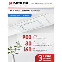Купить Вытяжка кухонная MEFERI INBOX60WH GLASS ULTRA на 60 см встраиваемая, белая, производительность 900 м3/ч, стекло с доставкой по всей России.