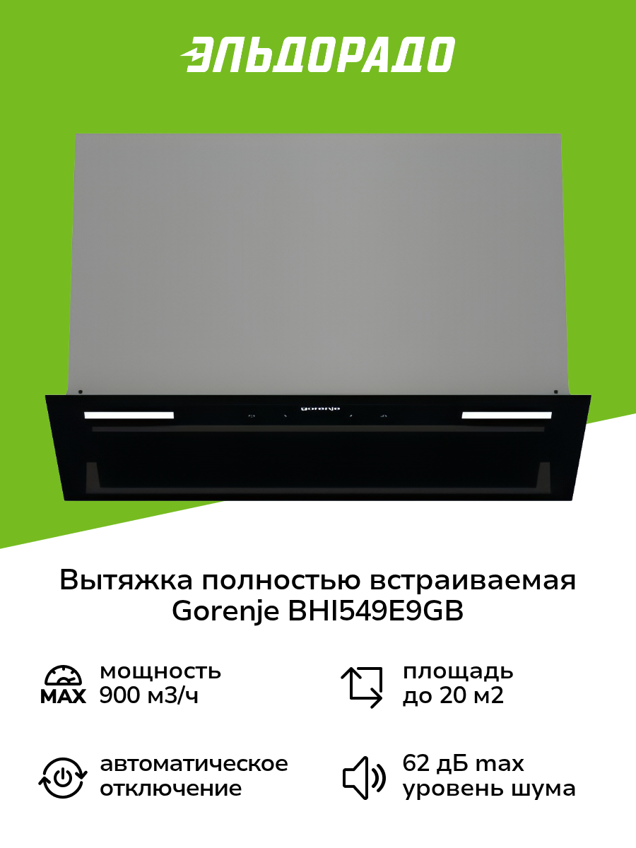 Встраиваемая вытяжка Gorenje BHI549E9GB, светодиодная подсветка, сенсорное управление, черная: сравнение цен, характеристики, фото, актуальное наличие и цены.