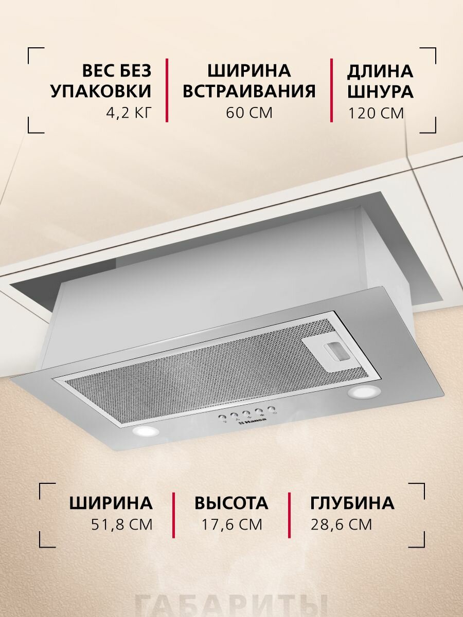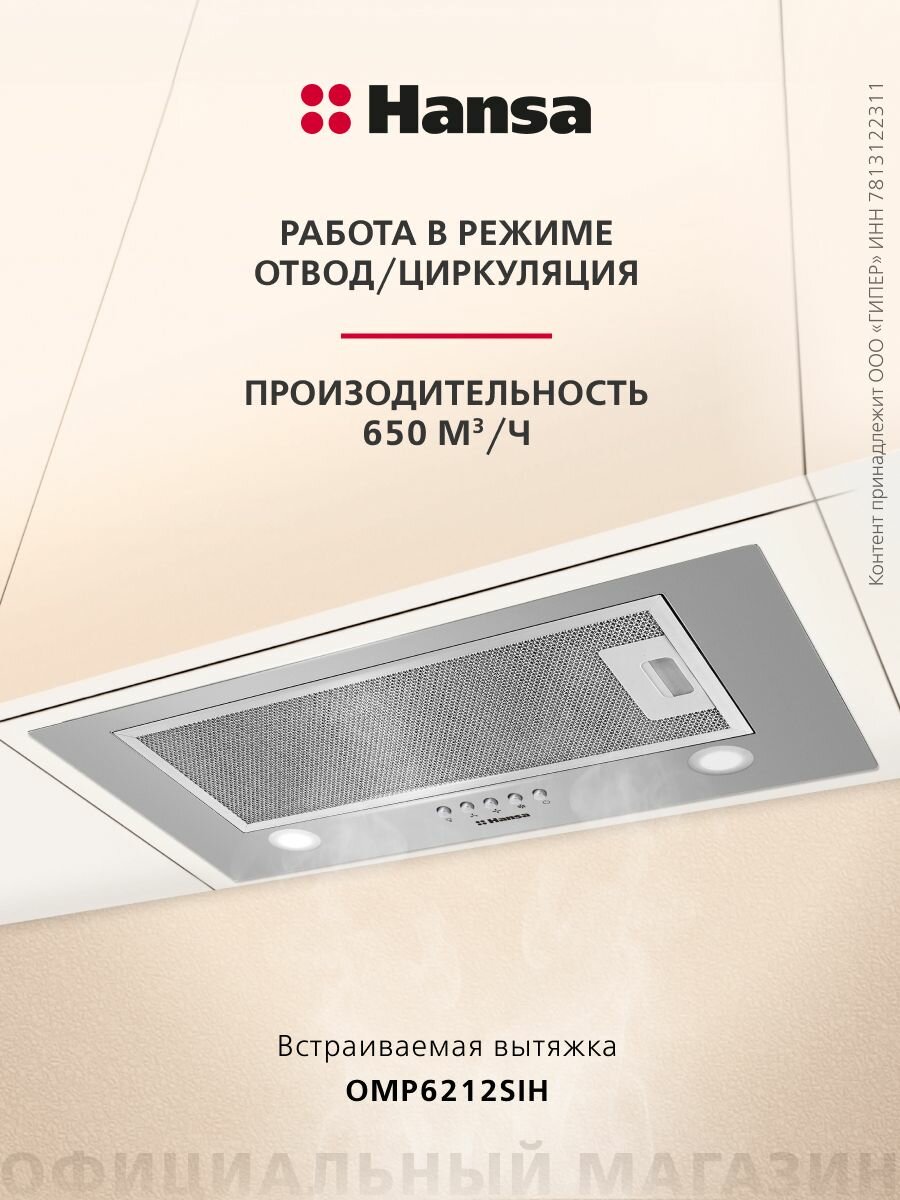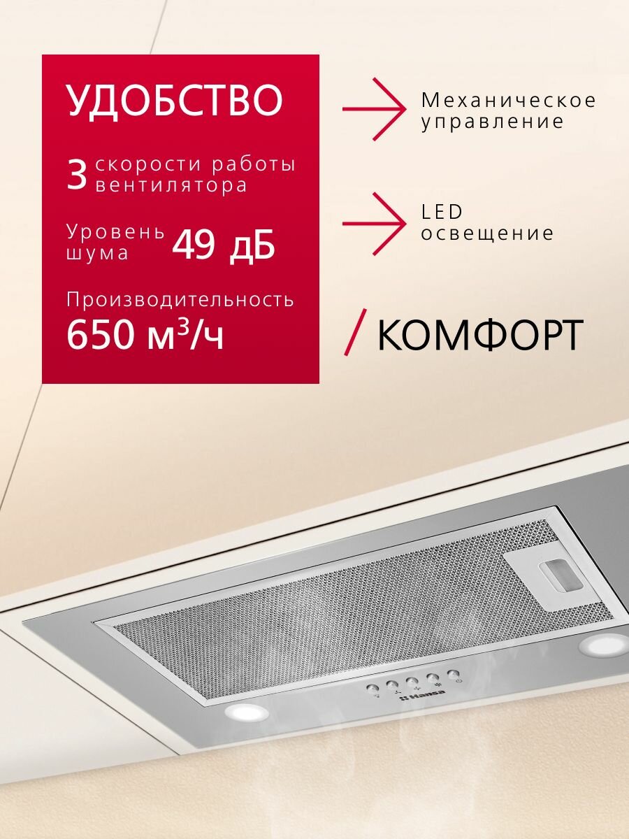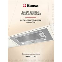 Встраиваемая вытяжка Hansa OMP6212SIH, 60 см, механическое управление, 3 скорости, режимы отвода и рециркуляции, светодиодная подсветка, серебристая: сравнение цен, характеристики, фото, актуальное наличие и цены.