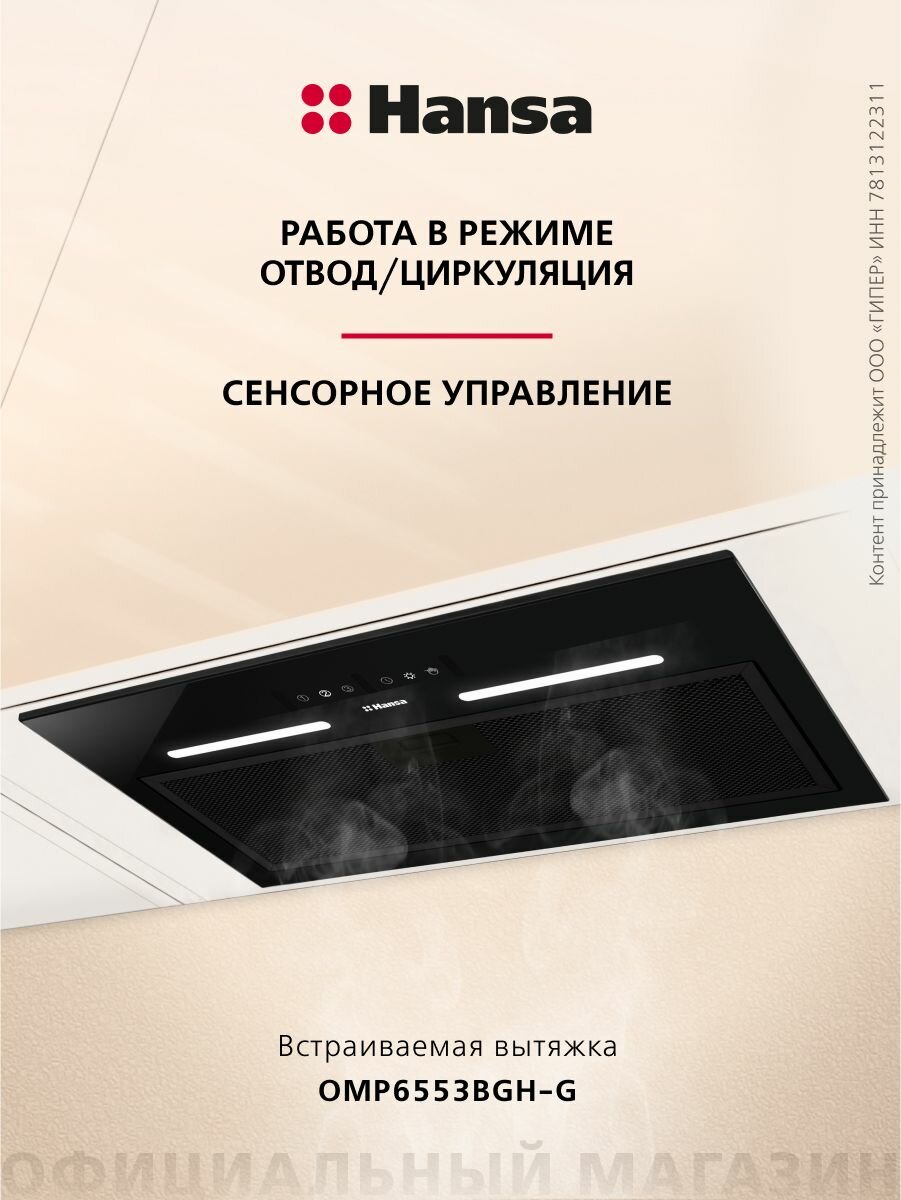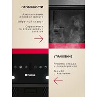 Встраиваемая вытяжка Hansa OMP6553BGH-G, 60 см, сенсорное управление, 3 скорости, режимы отвода и рециркуляции, светодиодная подсветка, черная: сравнение цен, характеристики, фото, актуальное наличие и цены.