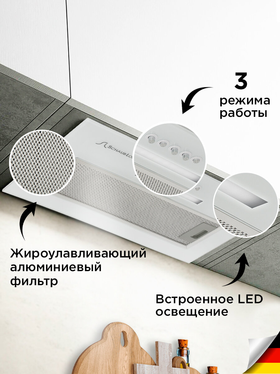 Встраиваемая вытяжка Schaub Lorenz SLD EL5007, 60 см, стекло, белая: сравнение цен, характеристики, фото, актуальное наличие и цены.