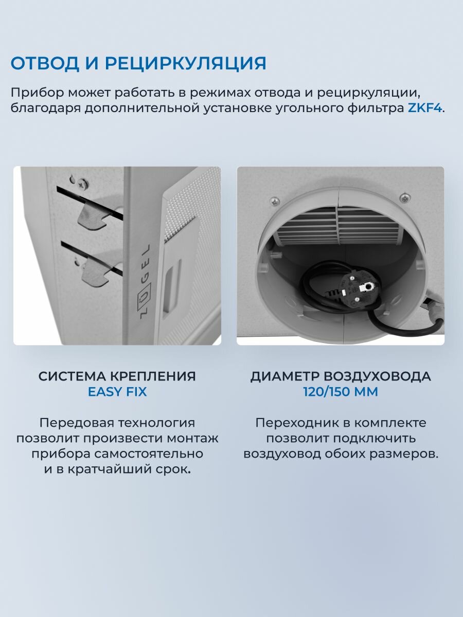 Купить Встраиваемая вытяжка ZUGEL ZHI523X, нержавеющая сталь, 3 скорости, 200 Вт с доставкой по всей России.