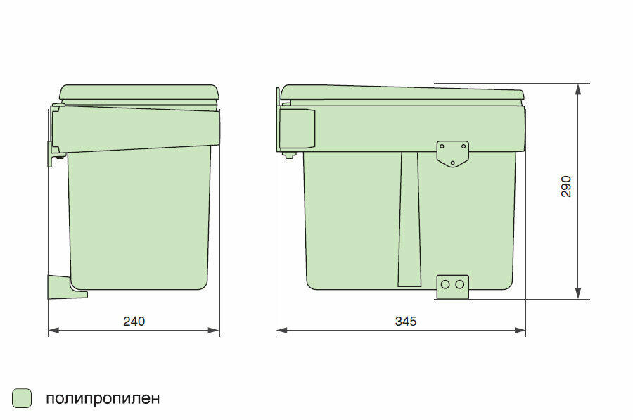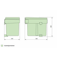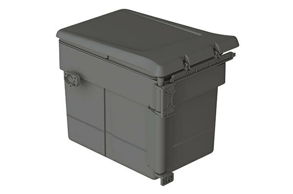 Встраиваемое в шкаф мусорное ведро объемом 15 литров производства UNIONPLAST Италия с автоматически открываемой крышкой при открывании дверцы шкафа.
