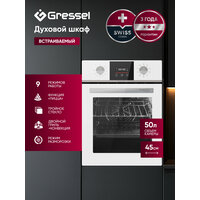 Купить Встраиваемый духовой шкаф Gressel U4EC59000, 50 л, двойной гриль, таймер, конвекция, белое стекло с доставкой по всей России.