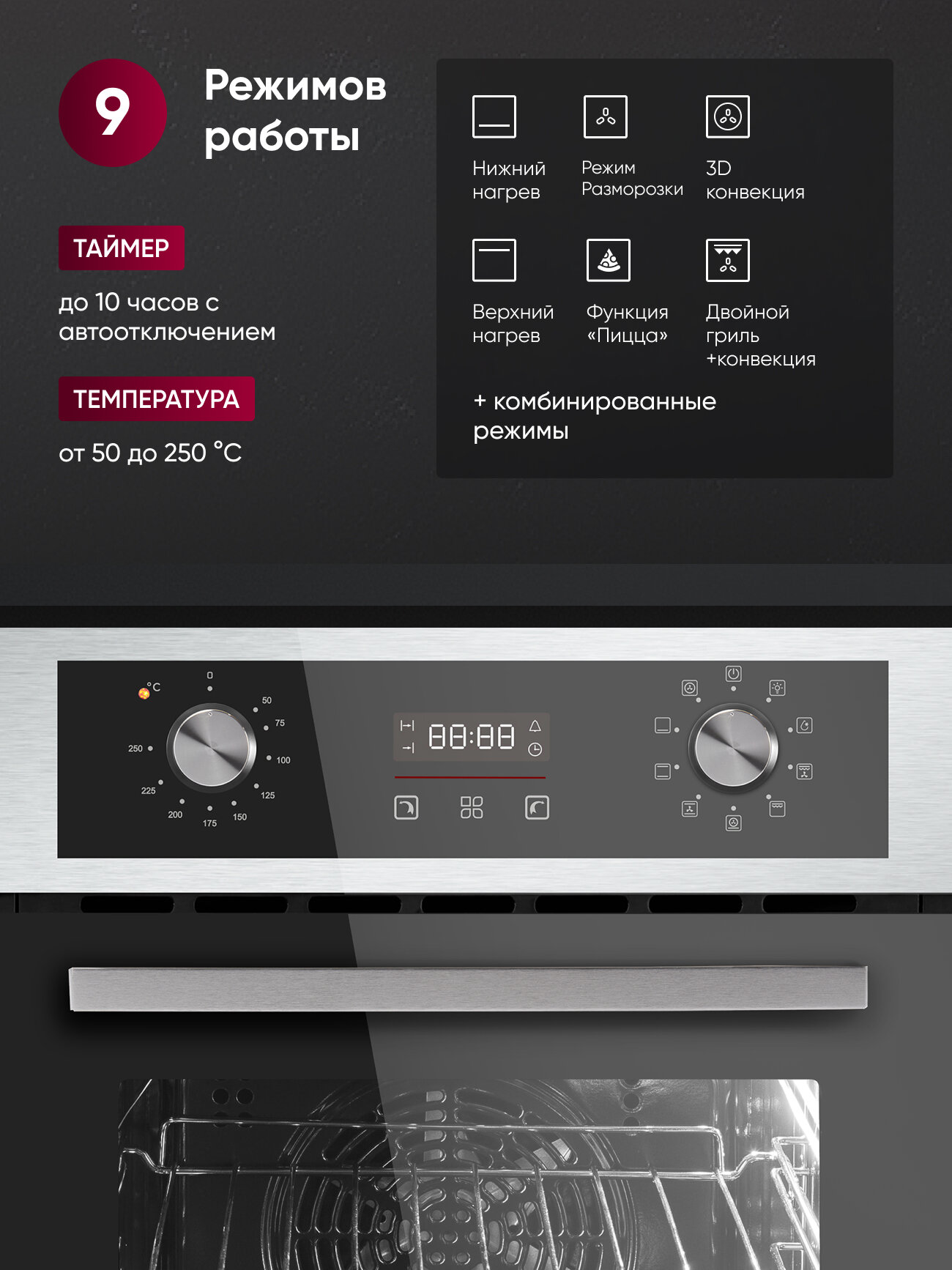 Купить Встраиваемый духовой шкаф Gressel U4EM59001 45 см, 9 режимов, 3D-конвекция, разморозка, двойной гриль с доставкой по всей России.