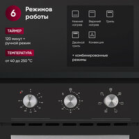 | Режимы нагрева | верхний нагрев + нижний нагрев, верхний нагрев + нижний нагрев + конвекция, гриль, нижний нагрев, нижний нагрев + конвекция |
