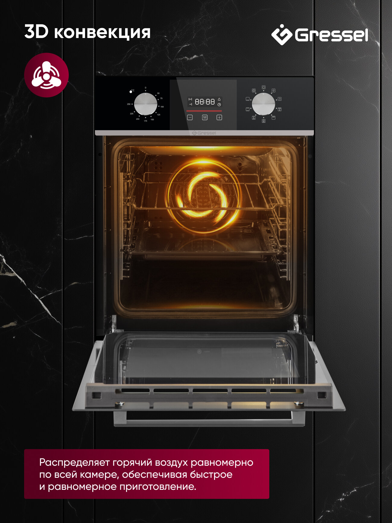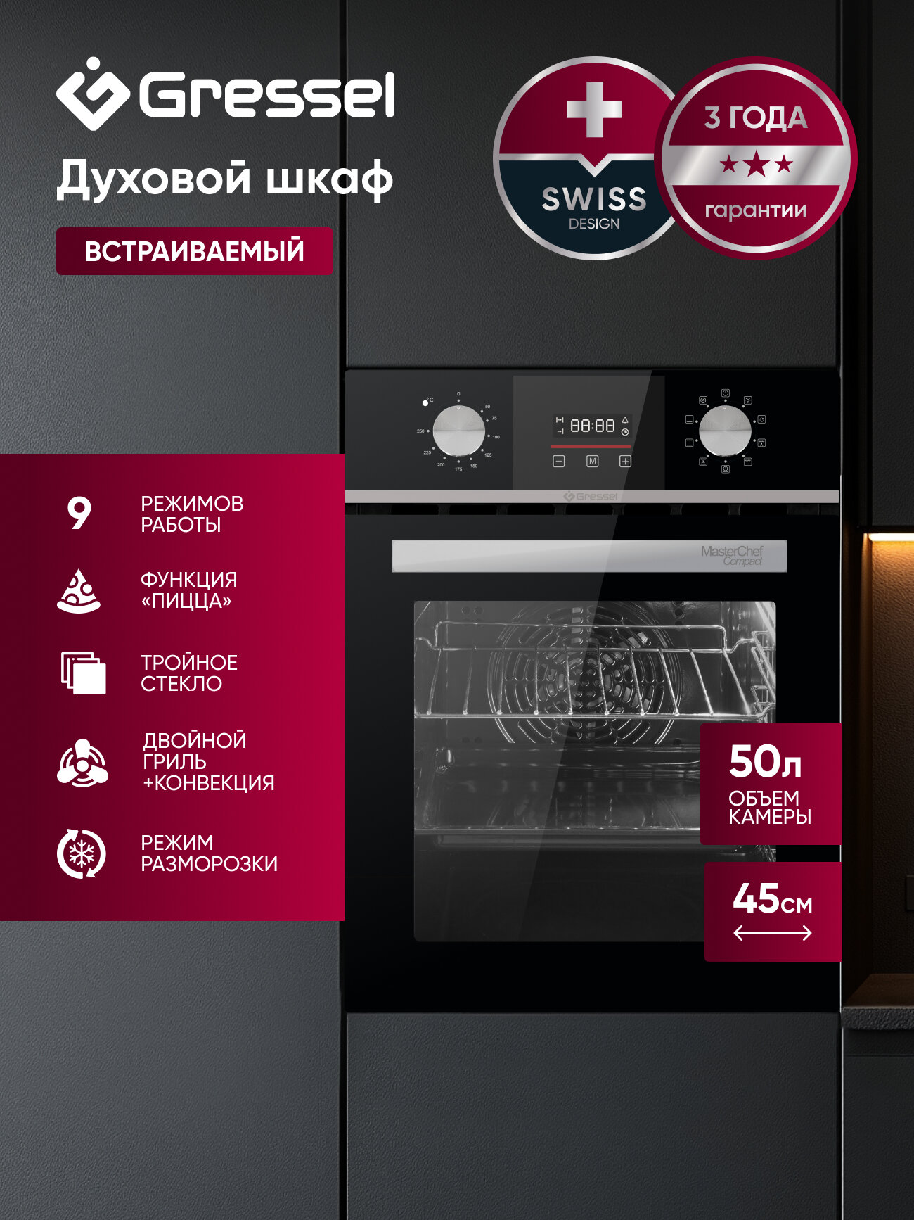 Купить Встраиваемый духовой шкаф Gressel U4ES59011, 45см, тройное стекло, 9 режимов, двойной гриль, 50 л с доставкой по всей России.
