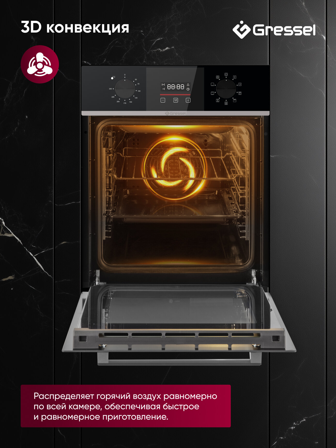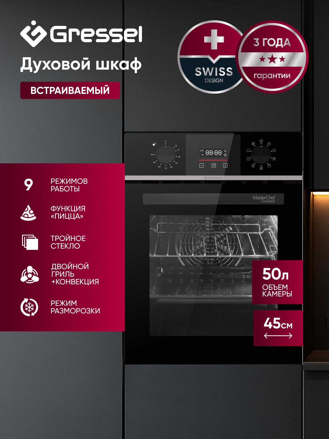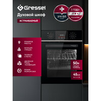 Купить Встраиваемый духовой шкаф Gressel U4ES59100, 45 см, 50 л, разморозка, двойной гриль, конвекция, тройное стекло с доставкой по всей России.