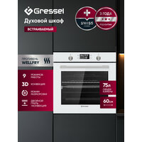 Устали от тёмной техники? Gressel U6EC69110 с белым стеклом освежит интерьер кухни. При объёме 75 л и 9 режимах (конвекция, гриль, разморозка, пицца и т. д.) вы сможете готовить полноценные обеды и десерты без суеты. Цифровой таймер-программатор вносит точность в процесс, а система автоотключения контролирует безопасность. Утапливаемые ручки управления сохраняют лаконичный вид фасада, а двойное остекление дверцы поддерживает стабильную температуру внутри. Один уровень телескопов облегчает доставание противней, а эмаль лёгкой очистки упрощает уход за внутренней камерой. Мощность около 3100 Вт позволяет быстро разогреть духовку и запечь крупные порции мяса или выпечку. «Разморозка», «Гриль», «Быстрое приготовление» — все эти функции предложат разнообразие рецептов. Благодаря светлому оформлению Gressel U6EC69110 отлично подойдёт для сканди-интерьера или воздушного хай-тека. Если вы цените вместительность и хотите нежный, не перегруженный видом духовой шкаф, эта модель окажется именно тем, что нужно.