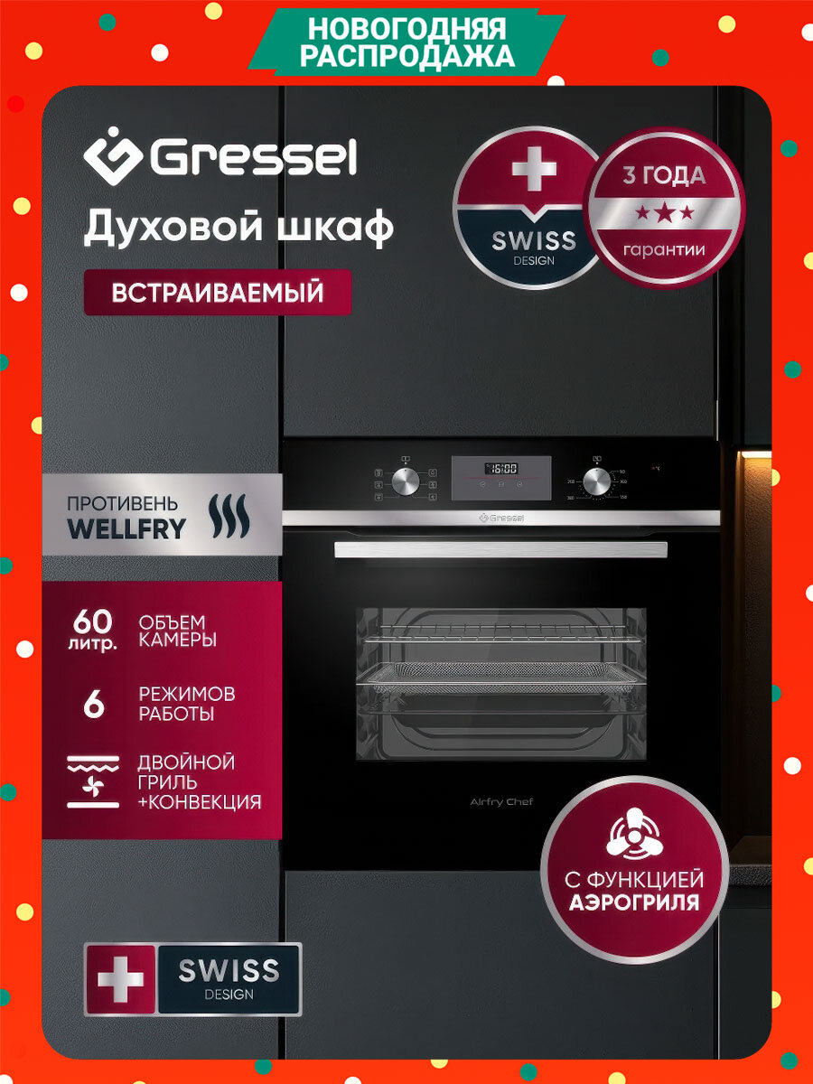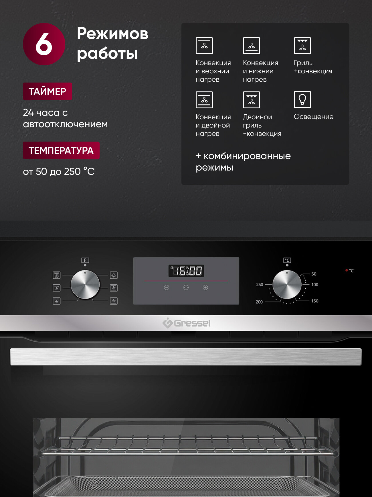 Встраиваемый духовой шкаф Gressel U6ES57000 60 см, с функцией аэрогриля, 6 режимов: сравнение цен, характеристики, фото, актуальное наличие и цены.