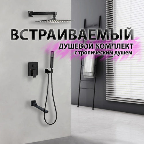 Купить Душевая система ALMAes Elbe TVZ-0811 Черная матовая латунь встраиваемый с изливом со смесителем с доставкой по всей России.