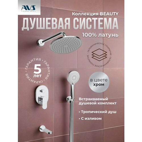 Купить Встраиваемый душевой комплект скрытого монтажа AVS Beauty с тропическим душем и смесителем с изливом хром, латунь с доставкой по всей России.