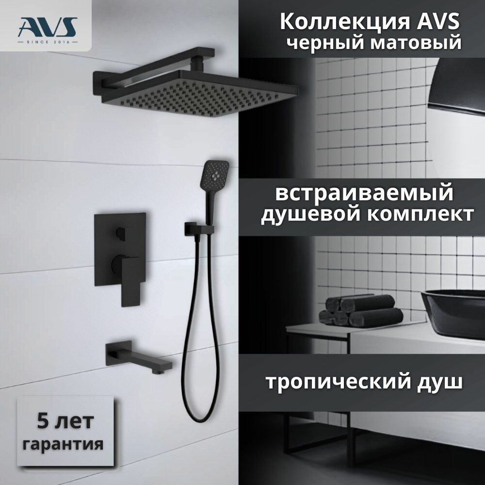 Купить Встраиваемый душевой комплект скрытого монтажа AVS Cube с тропическим душем и смесителем с изливом черный матовый, латунь с доставкой по всей России. Встраиваемый душевой комплект скрытого монтажа AVS Cube с тропическим душем и смесителем с изливом черный матовый, латунь: сравнение цен, характеристики, фото, актуальное наличие и цены.