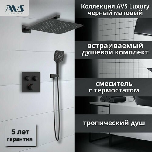 Купить Встраиваемый душевой комплект скрытого монтажа AVS Luxury с тропическим душем и смесителем с термостатом без излива черный матовый , латунь с доставкой по всей России. Встраиваемый душевой комплект скрытого монтажа AVS Luxury с тропическим душем и смесителем с термостатом без излива черный матовый , латунь: сравнение цен, характеристики, фото, актуальное наличие и цены.
