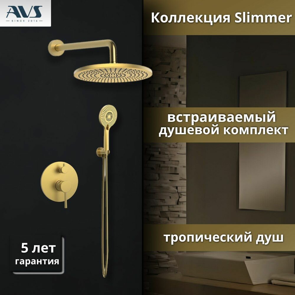 Купить Встраиваемый душевой комплект скрытого монтажа AVS Slimmer с тропическим душем и смесителем без излива брашированное золото, латунь с доставкой по всей России. Встраиваемый душевой комплект скрытого монтажа AVS Slimmer с тропическим душем и смесителем без излива брашированное золото, латунь: сравнение цен, характеристики, фото, актуальное наличие и цены.