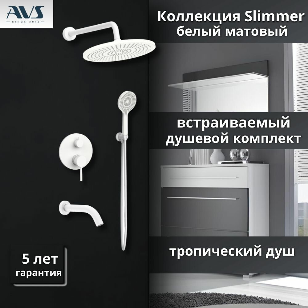 Купить Встраиваемый душевой комплект скрытого монтажа AVS Slimmer с тропическим душем и смесителем с изливом белый матовый, латунь с доставкой по всей России. Встраиваемый душевой комплект скрытого монтажа AVS Slimmer с тропическим душем и смесителем с изливом белый матовый, латунь: сравнение цен, характеристики, фото, актуальное наличие и цены.