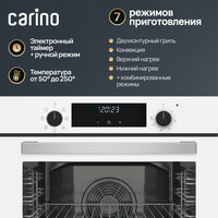 Встраиваемый электрический духовой шкаф CARINO CB6EC68122 60 см, 7 режимов, 73л, конвекция, двойное стекло, хромированные направляющие, белый: сравнение цен, характеристики, фото, актуальное наличие и цены.