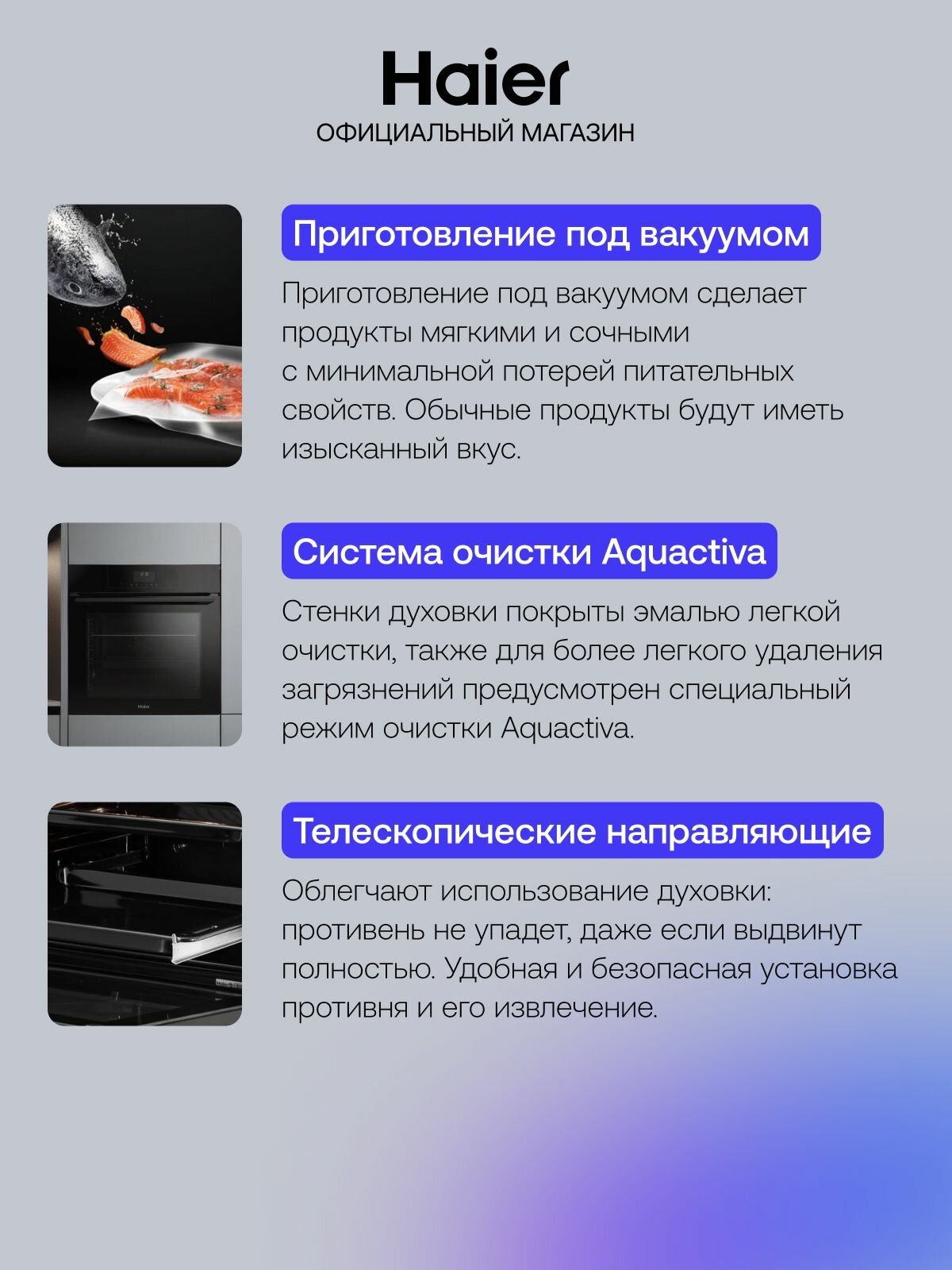 | Особенности конструкции | дисплей, телескопические направляющие, часы, эмаль легкой чистки |