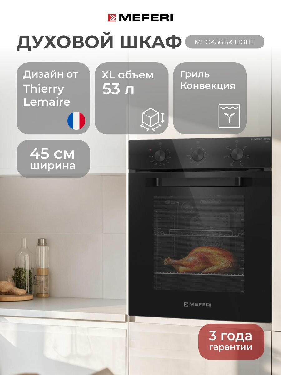 Духовой шкаф электрический Meferi MEO456BK LIGHT, цвет черный: сравнение цен, характеристики, фото, актуальное наличие и цены.