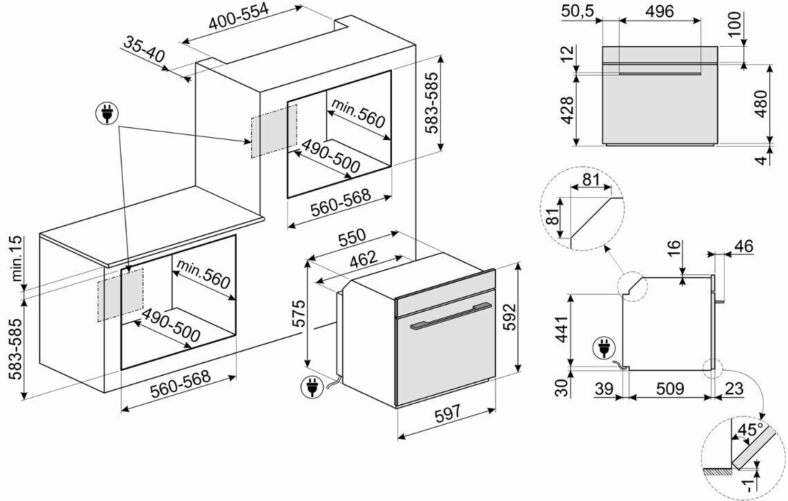 | Особенности конструкции | вертел, дисплей, подсветка камеры, тангенциальное охлаждение, телескопические направляющие, термощуп, часы, эмаль легкой чистки |